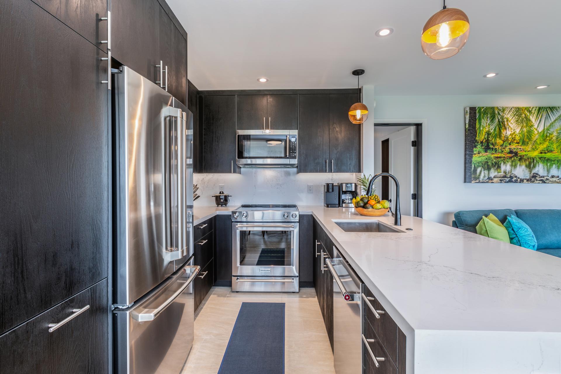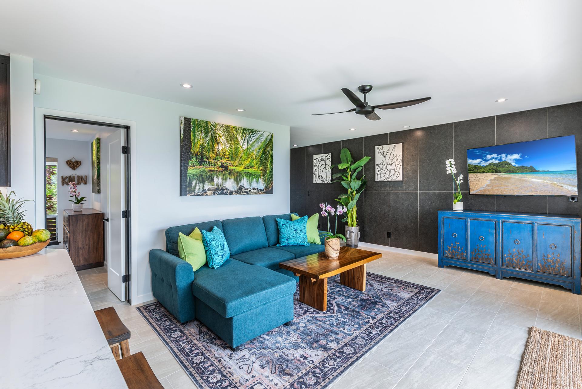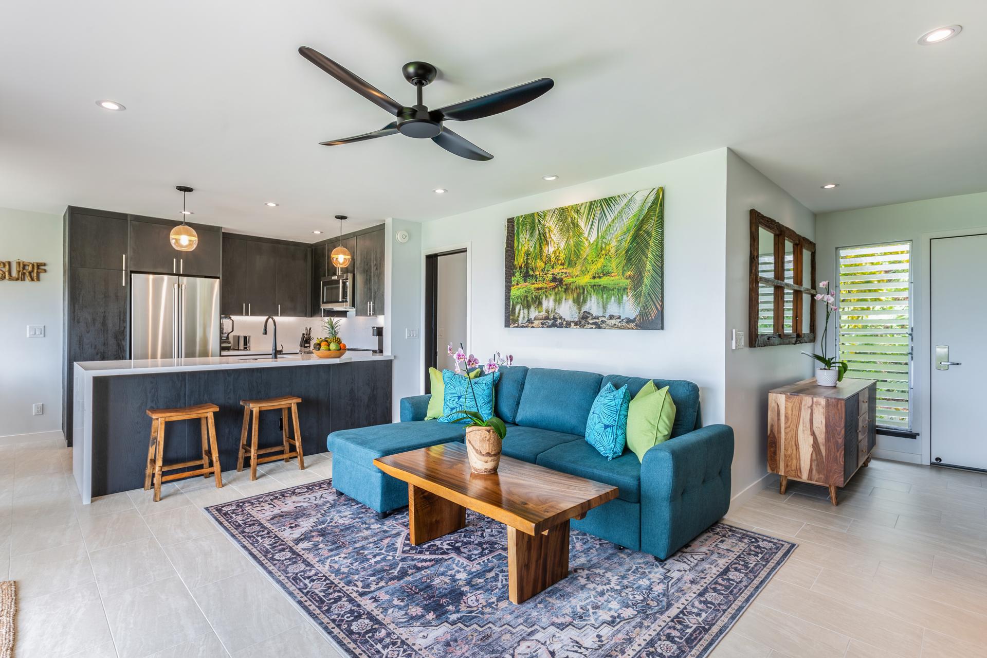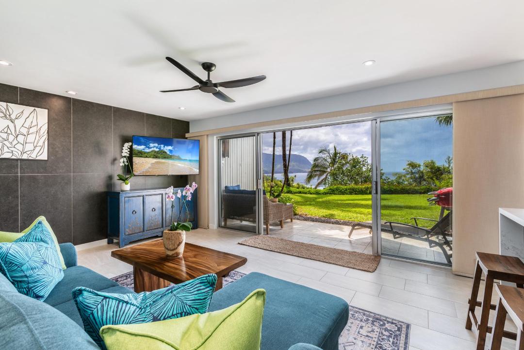 This condo has been completely renovated and is absolutely beautiful! Perfect honeymoon or romantic retreat. This bright and sunny, Kaua’i vacation rental has island style, open concept living room, dining room and kitchen and private lanai with amazing ocean and Bali Hai views.