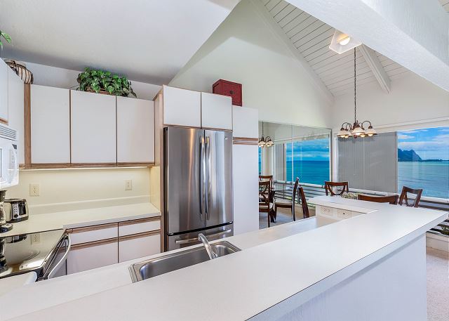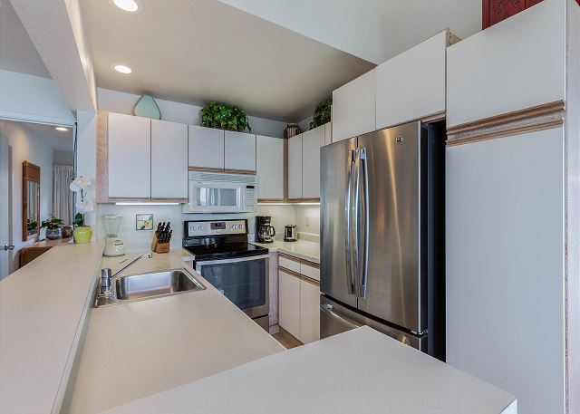 Enjoy the finest remodel, all new stainless appliances, gorgeous porcelain tile through out. Panoramic ocean and Bali Hai views. 2 bedrooms, both with remodeled ensuite bathrooms. Bedroom 1 has a Cal King bed, the 2nd bedroom has 2 twins that can be made into a king upon request.