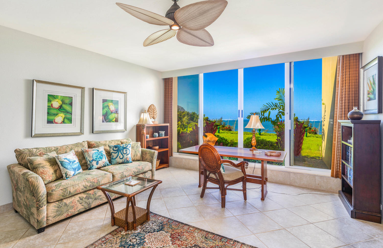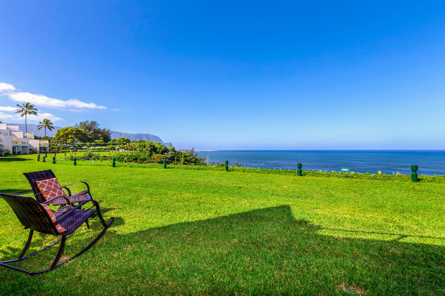 Other adventures within a 5-10 minute drive include zip-lining, horseback riding, sea kayaking, river canoeing and helicopter adventures. Pamper yourself at the 1 Hotel Hanalei Bay spa or take a yoga class in Hanalei. Finish your day watching the sunset from your from your private lanais – yes, there are two – both with views of legendary Bali Hai. Enjoy an elegant romantic dinner at one of Princeville or Hanalei’s many restaurants or have fun cooking in your fully appointed kitchen. End your day with a quiet moment feeling the ocean breeze, either from a lawn chair, or through the more than 40 feet of floor to ceiling screened windows. This is truly paradise! Located on Kauai’s incredible north shore overlooking the Pacific Ocean.