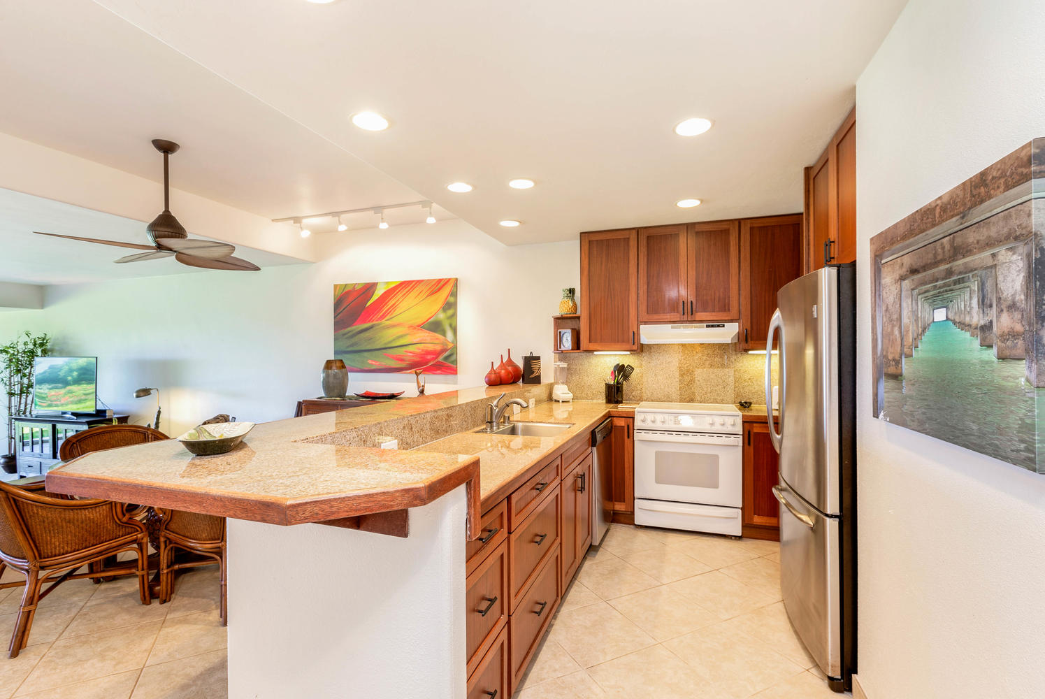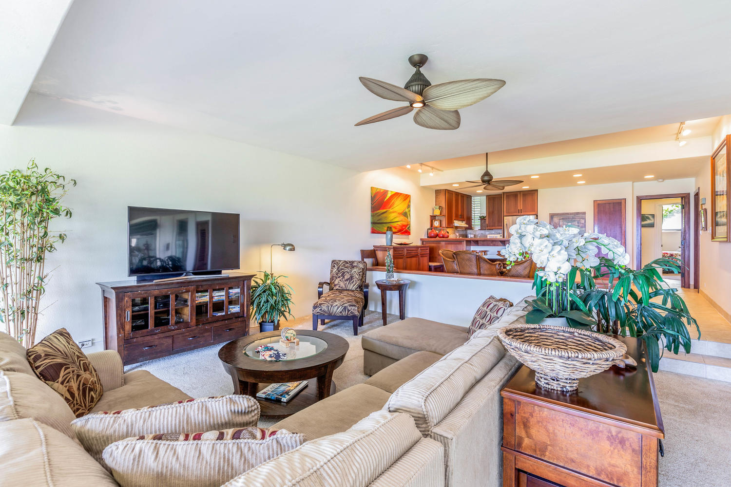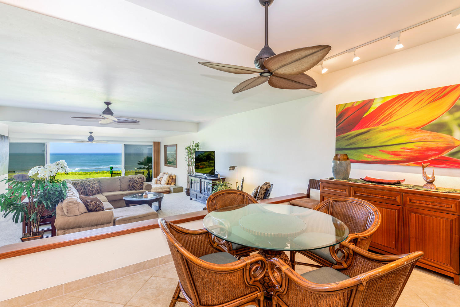 Beautiful island style oceanfront Pu’u Po’a vacation condo is designed with bright open floor plan with ocean views from kitchen, dining room, all three living room areas and the master bedroom. The ultimate setting for relaxation or adventure. Whales breech, dolphins jump, and surfers ride the waves all in front of your eyes.