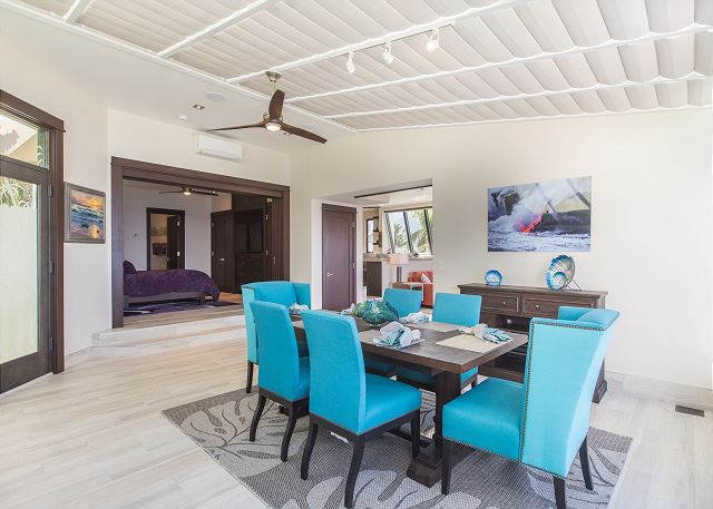 In addition to the dining area in the kitchen there is also a full dining room with beautiful artwork, elegant yet comfortable seating and magnificent ocean views.