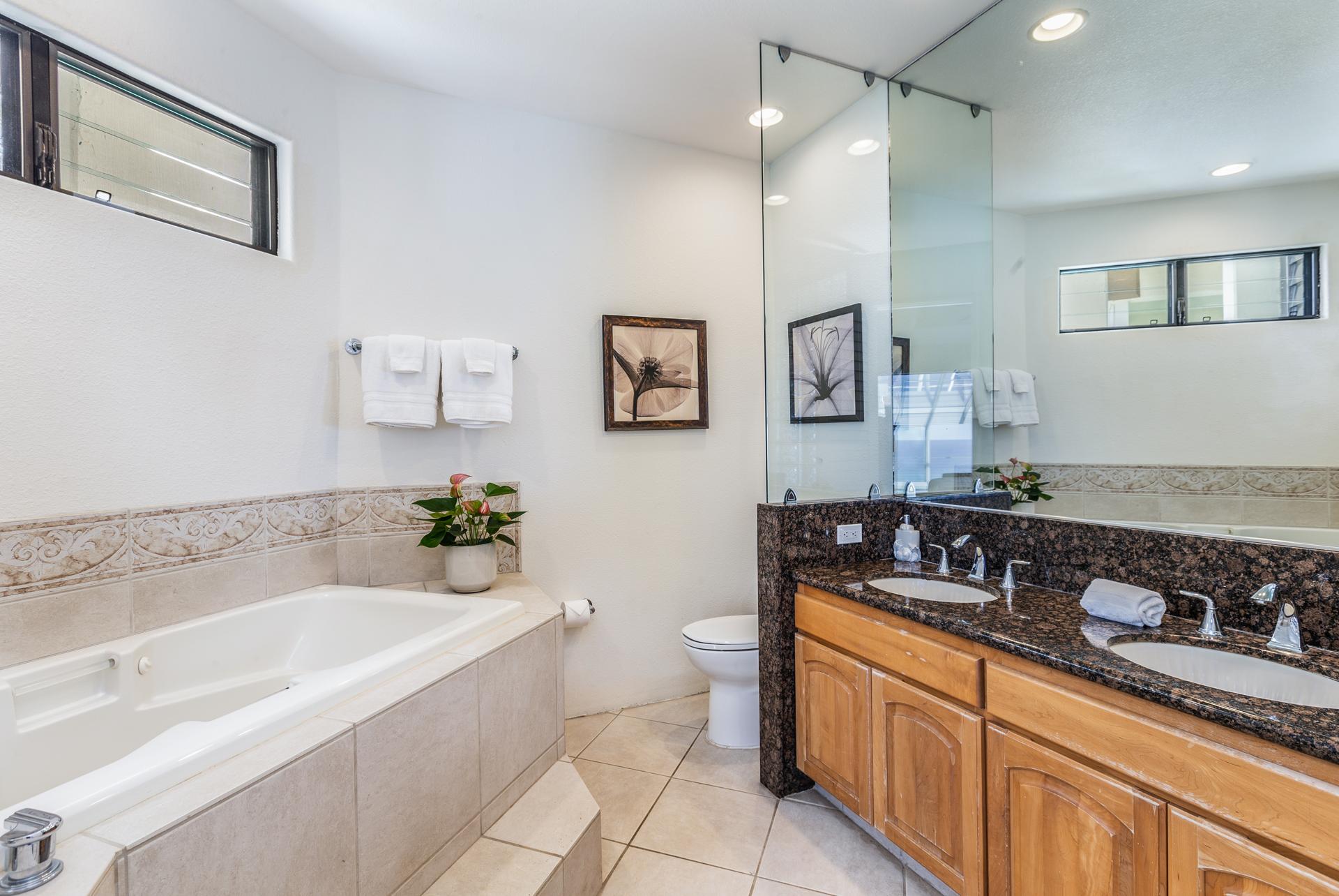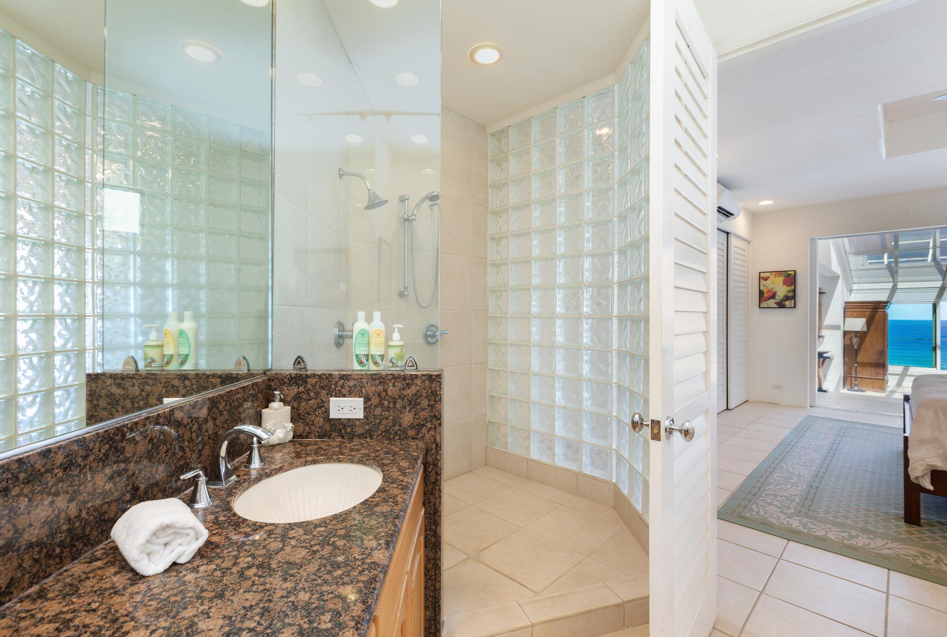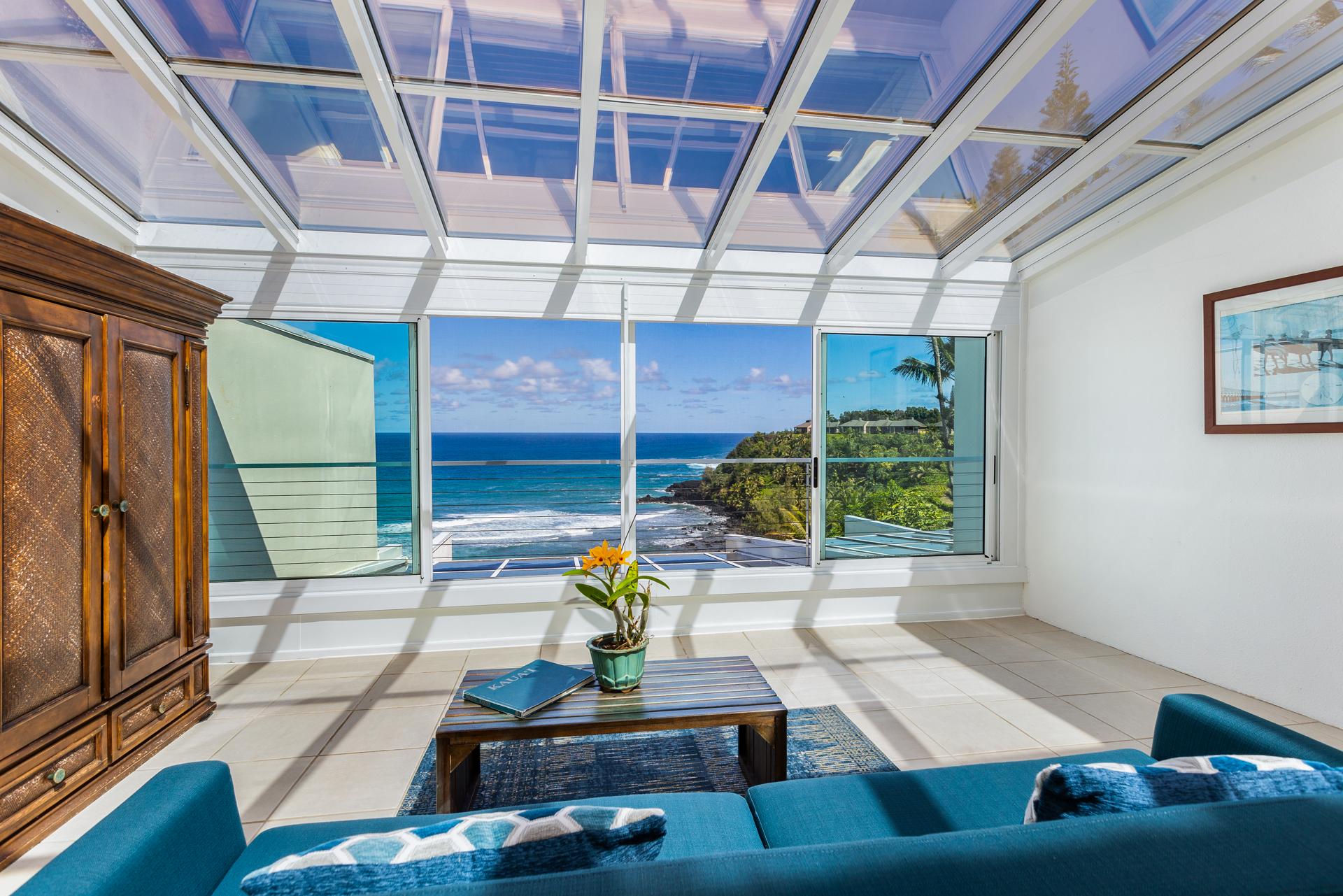 The kitchen is light and bright with gorgeous ocean views. It is spacious with plenty of room to cook and entertain. The kitchen features plenty of seating perfect for family and friends to gather and celebrate being in Hawaii. Imagine catching a glimpse of whales or dolphin while enjoying a bite to eat!