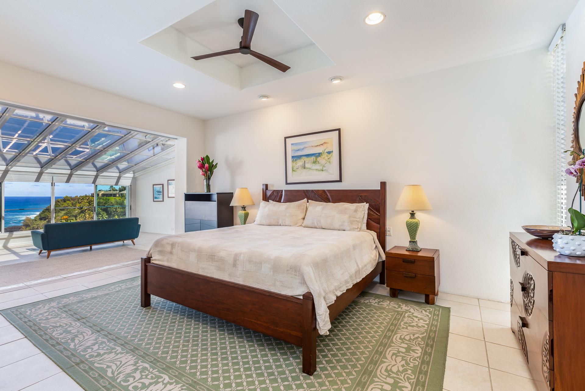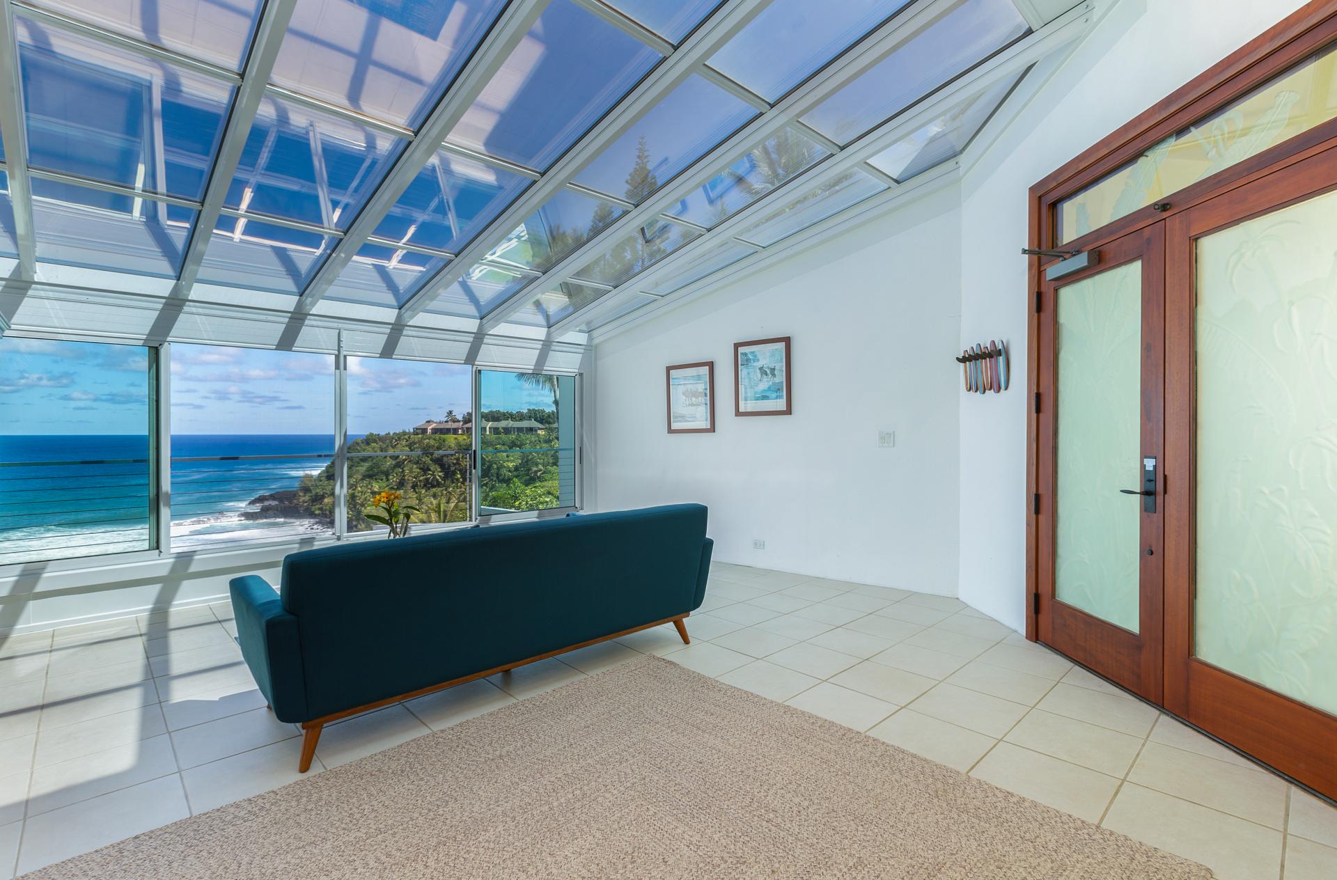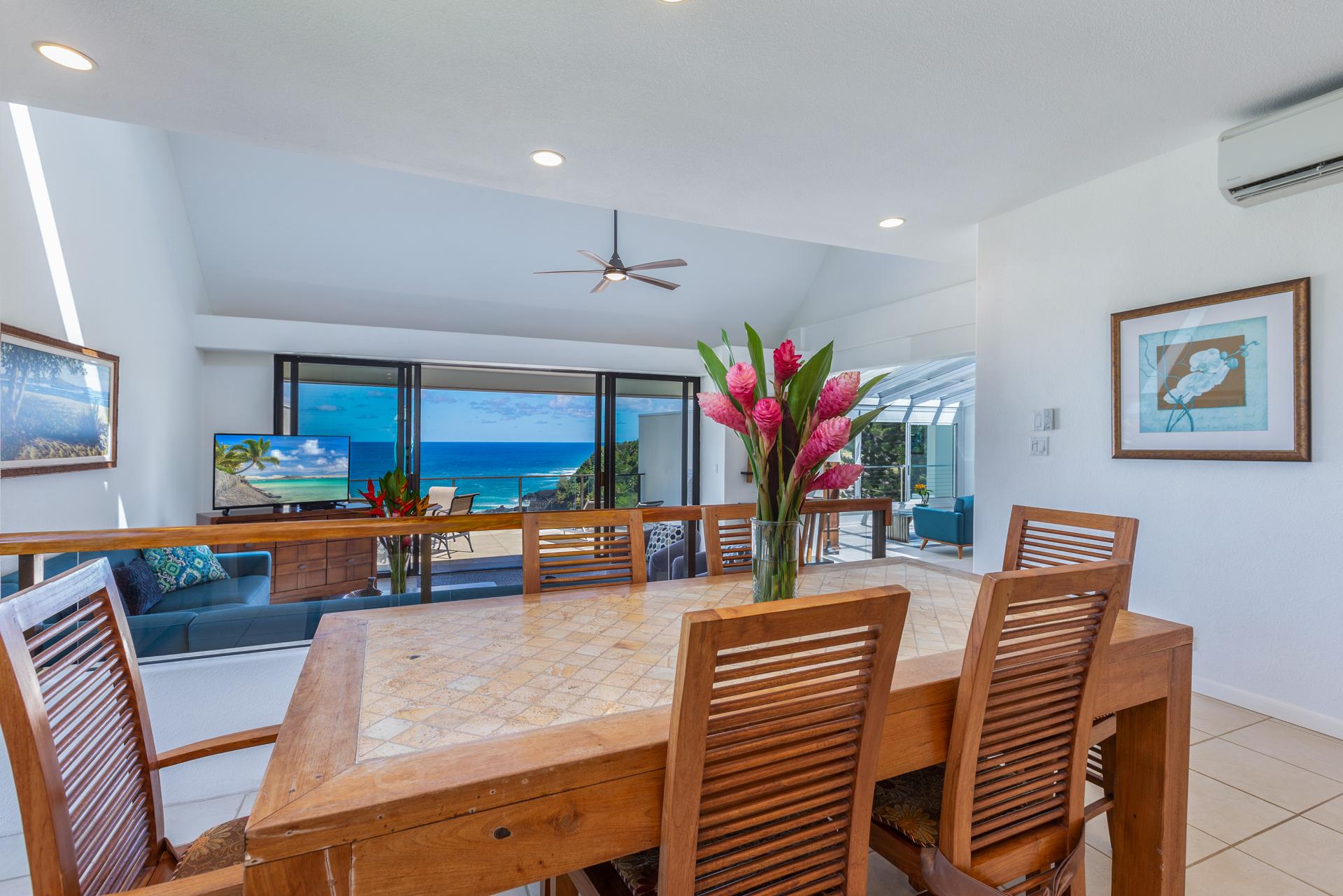 Pu’u Po’a has awesome views in almost any direction and unarguably, one of the best views on Kauai’s North Shore. You will enjoy the show from gorgeous sunrise to gorgeous sunset every day! Start your day with a cup of Hawaiian kona coffee and local tropical fruit out on your private lanai. Finish the day with cocktails while you take in the changing colors of the beautiful Pacific Ocean waters. Whatever the time of day, you may relax and enjoy the incredible and always changing panoramic views.