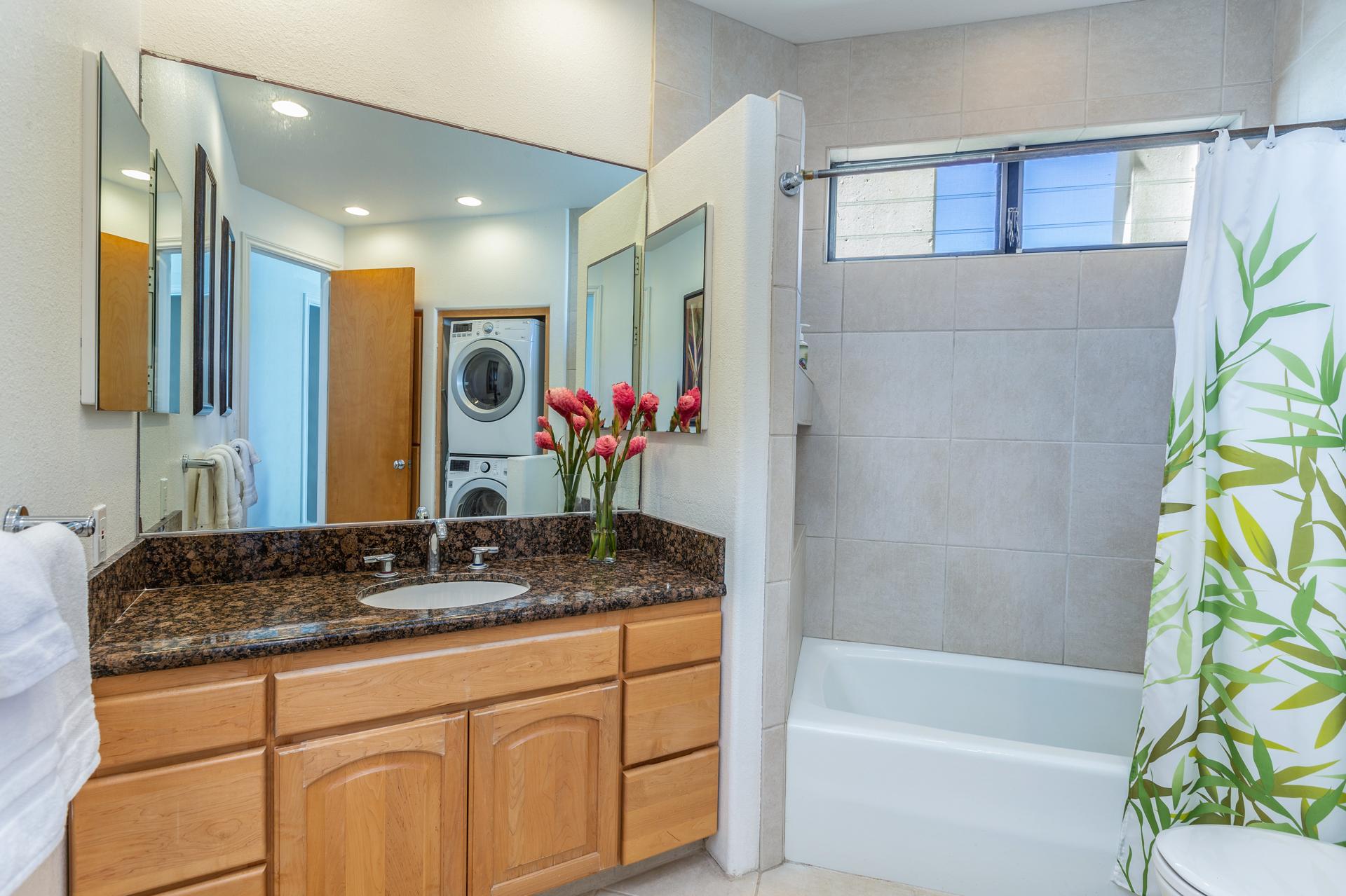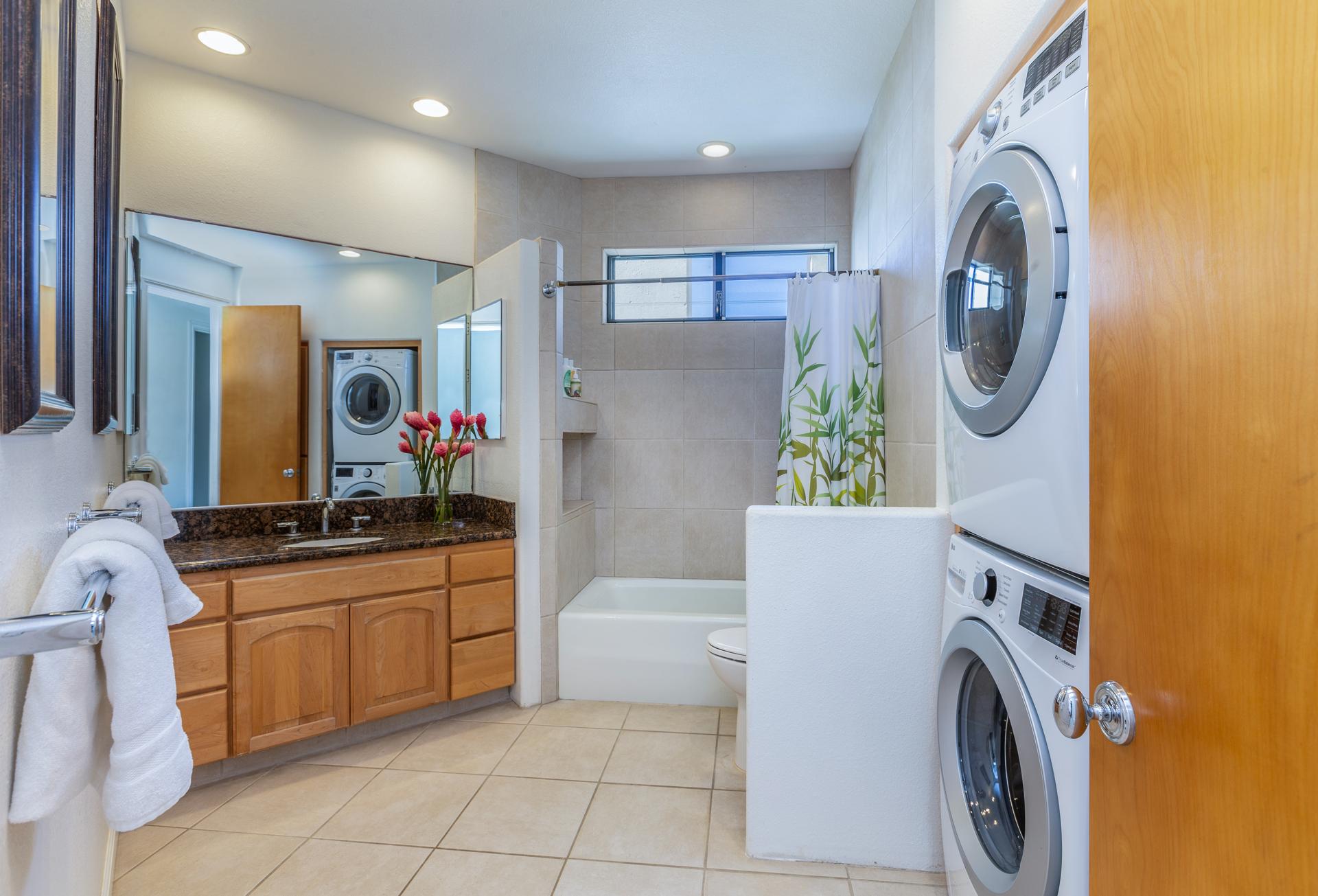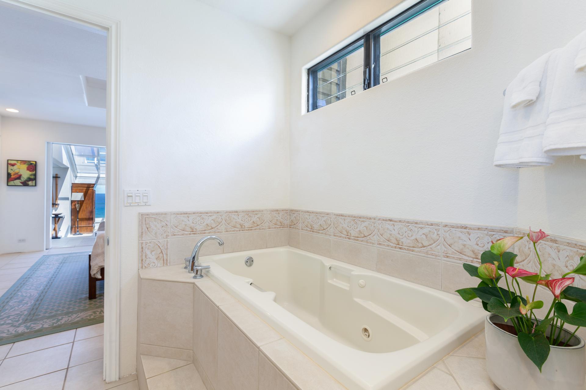 The master bedroom features a spacious Cal King size bed from which you may enjoy the spectacular ocean view. The second bedroom has a European King size bed. Your guests or family will enjoy beautiful ocean views.