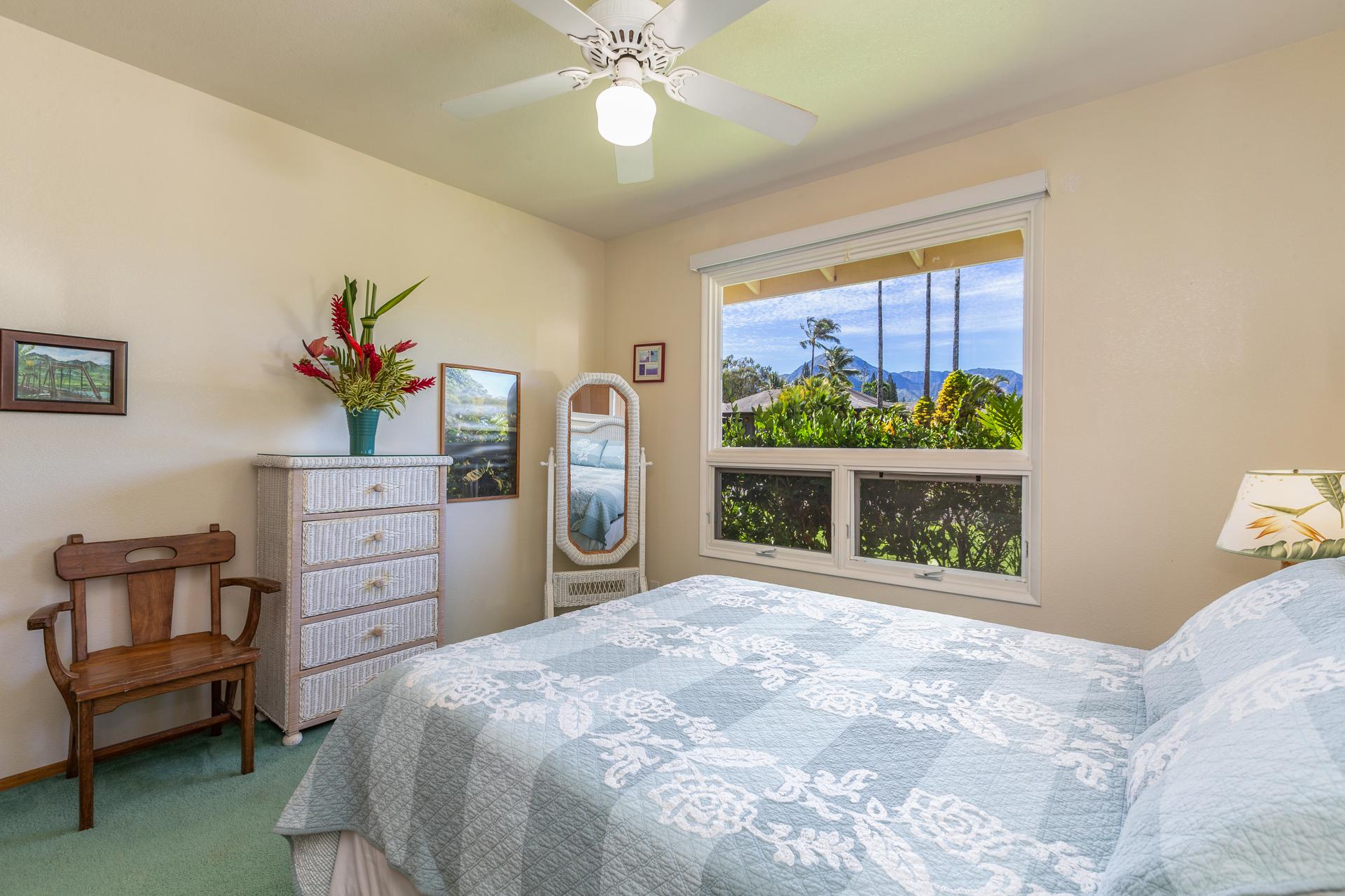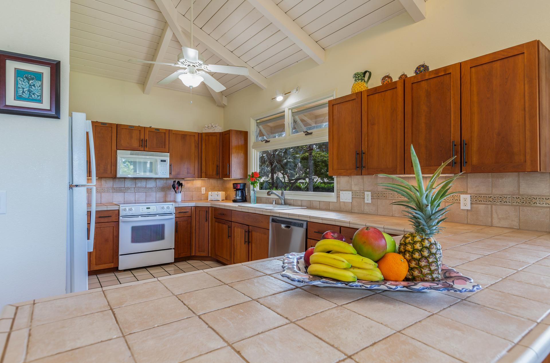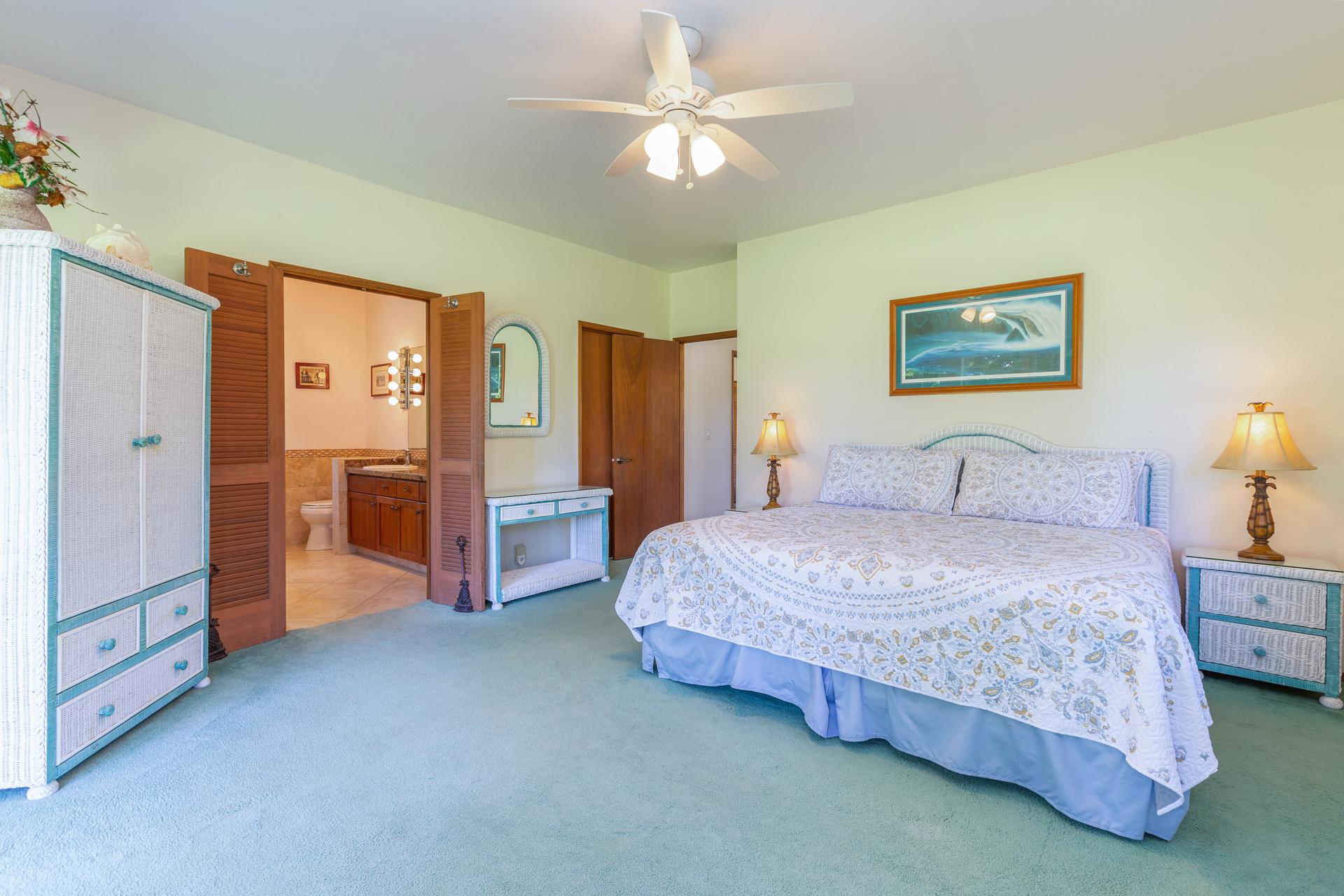 Remodeled living room features a 55” high definition TV. Master bedroom has a king-size bed with a flat screen TV and a remodeled master bathroom with oversized tub and walk in shower. The 2nd and 3rd bedrooms have queen-size beds. The fourth bedroom has 2 twin beds. There is a jog walk path along the golf course and Ka Haku Road leading to shops, restaurants, the community park, the 1 Hotel Hanalei Bay and nearby beaches.