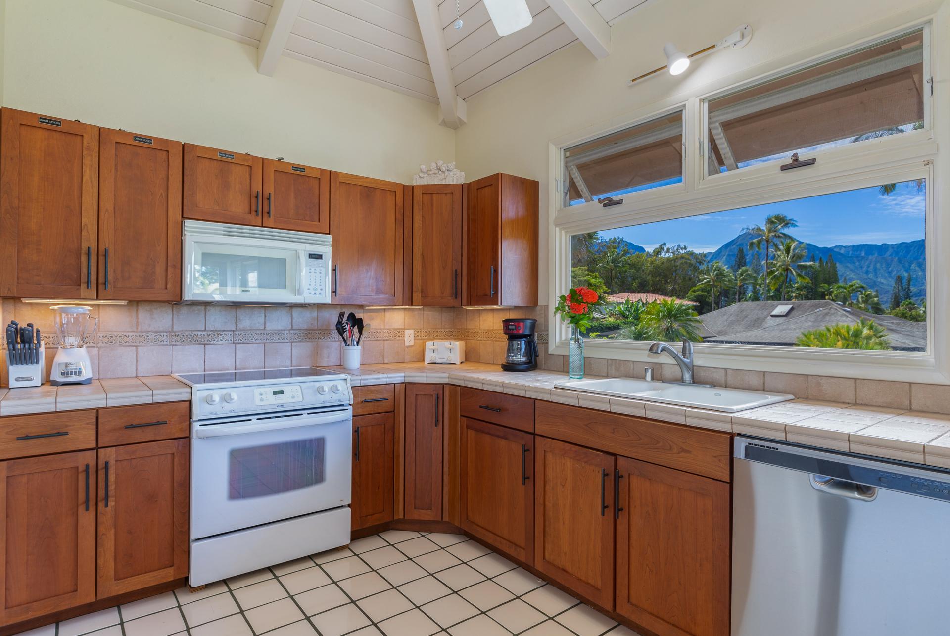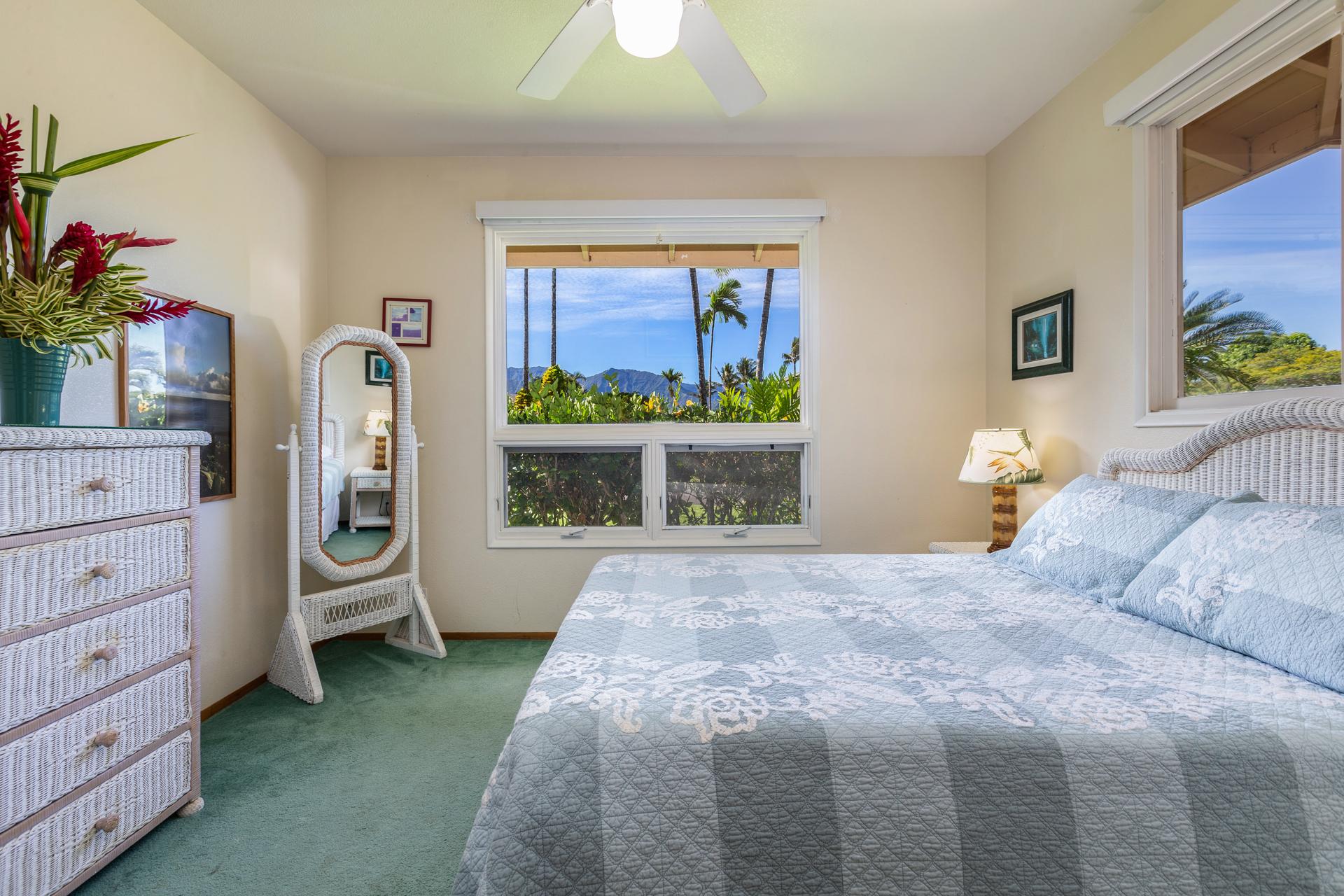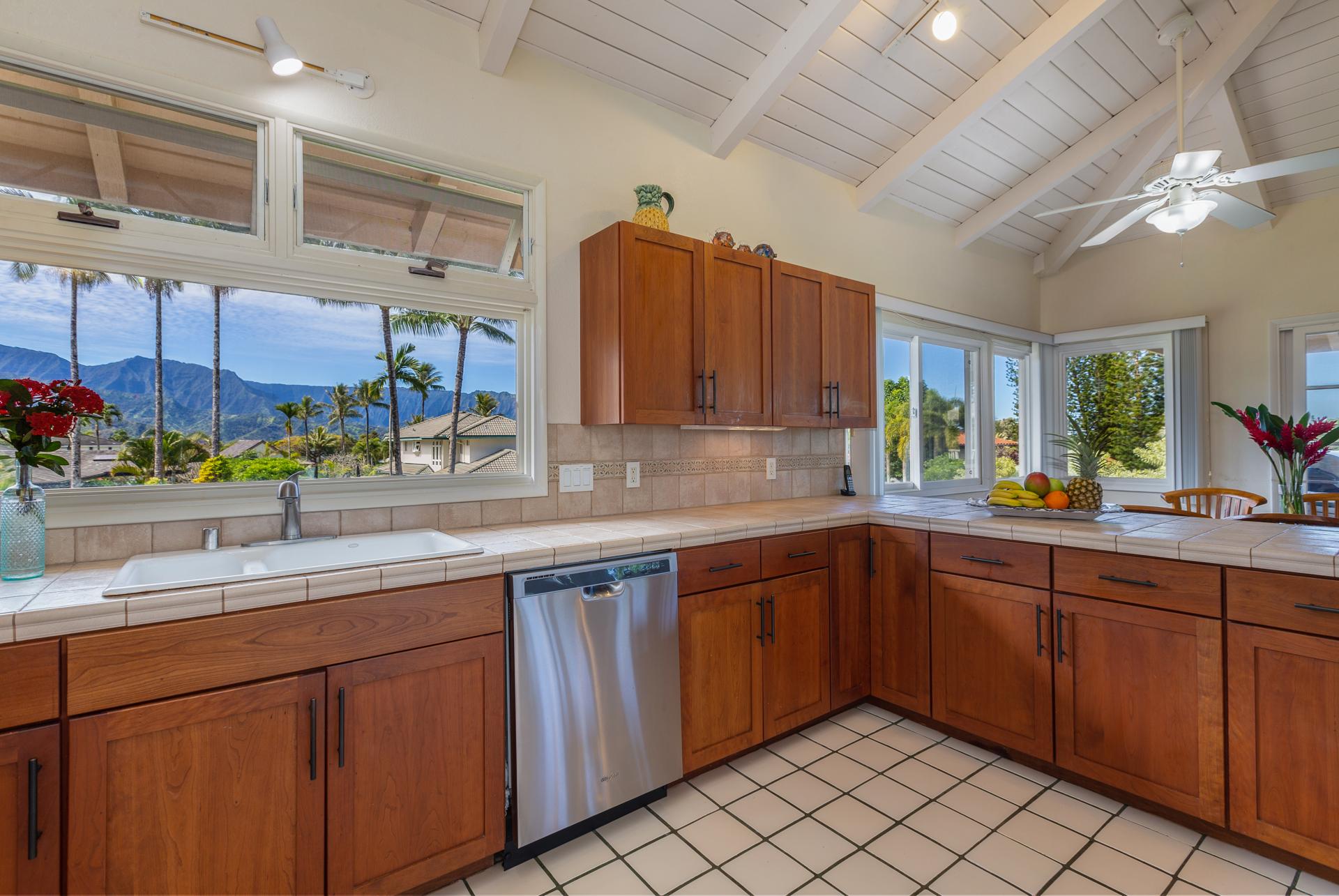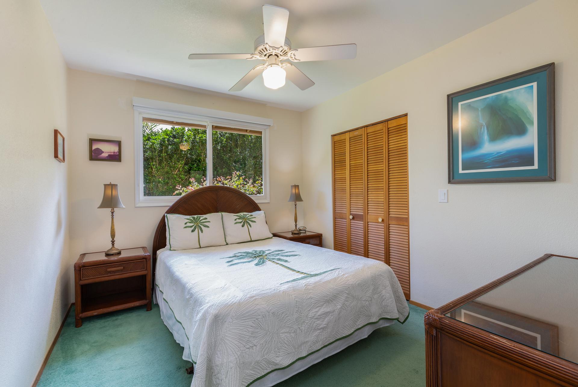 Remodeled living room features a 55” high definition TV. Master bedroom has a king-size bed with a flat screen TV and a remodeled master bathroom with oversized tub and walk in shower. The 2nd and 3rd bedrooms have queen-size beds. The fourth bedroom has 2 twin beds. There is a jog walk path along the golf course and Ka Haku Road leading to shops, restaurants, the community park, the 1 Hotel Hanalei Bay and nearby beaches.
