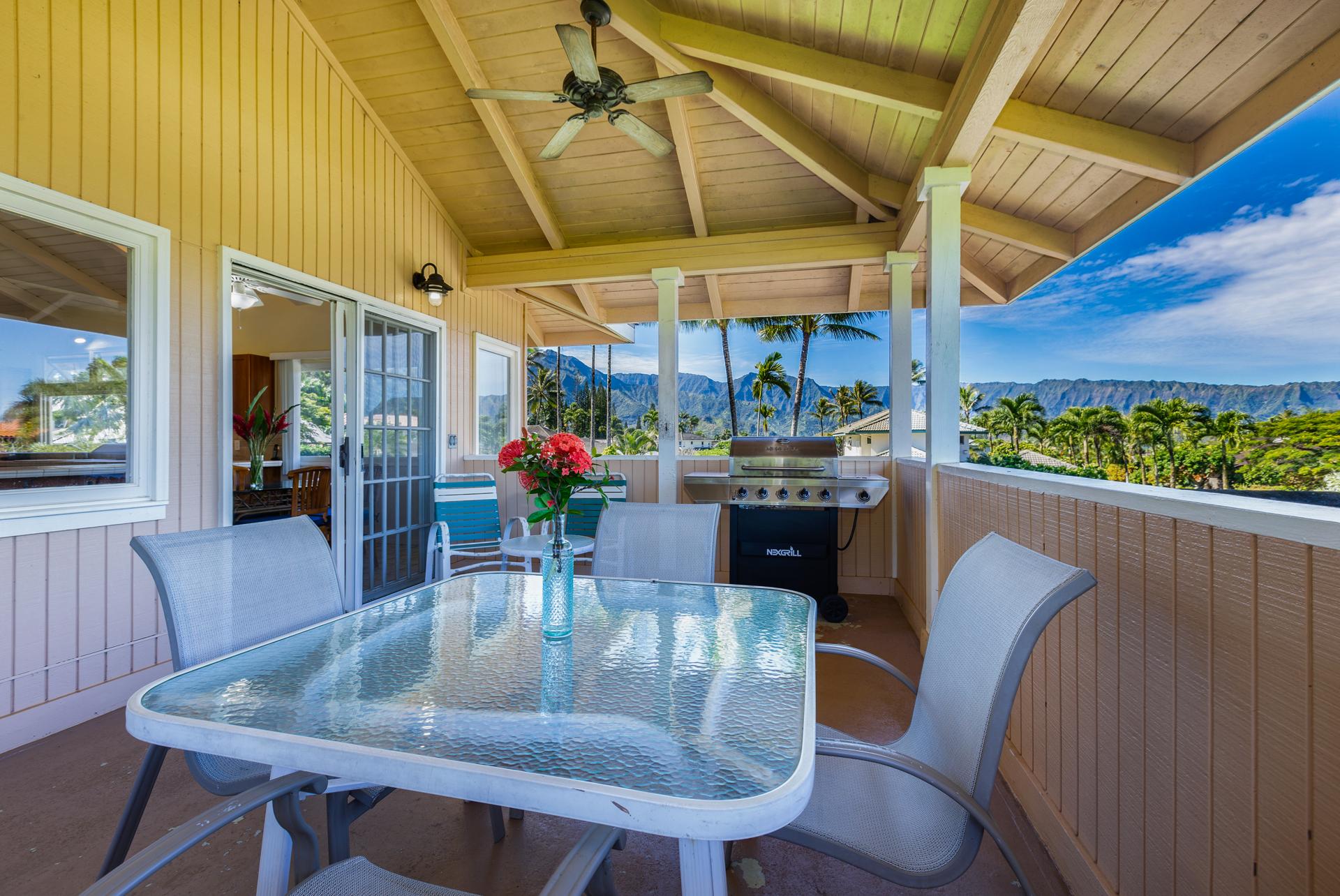 Very spacious home is perfect for group or family vacation. Master has a private lanai looking out over the large backyard with views of golf course. Second floor open-concept living room, dining room, kitchen is light and bright with beautiful views. Huge lanais wrap around from dining room to living room adding plenty of space to relax and read or sit with family and friends to play games, have fun and enjoy mountain and golf course views. There is a BBQ grill and outdoor dining area off the kitchen/dining areas.