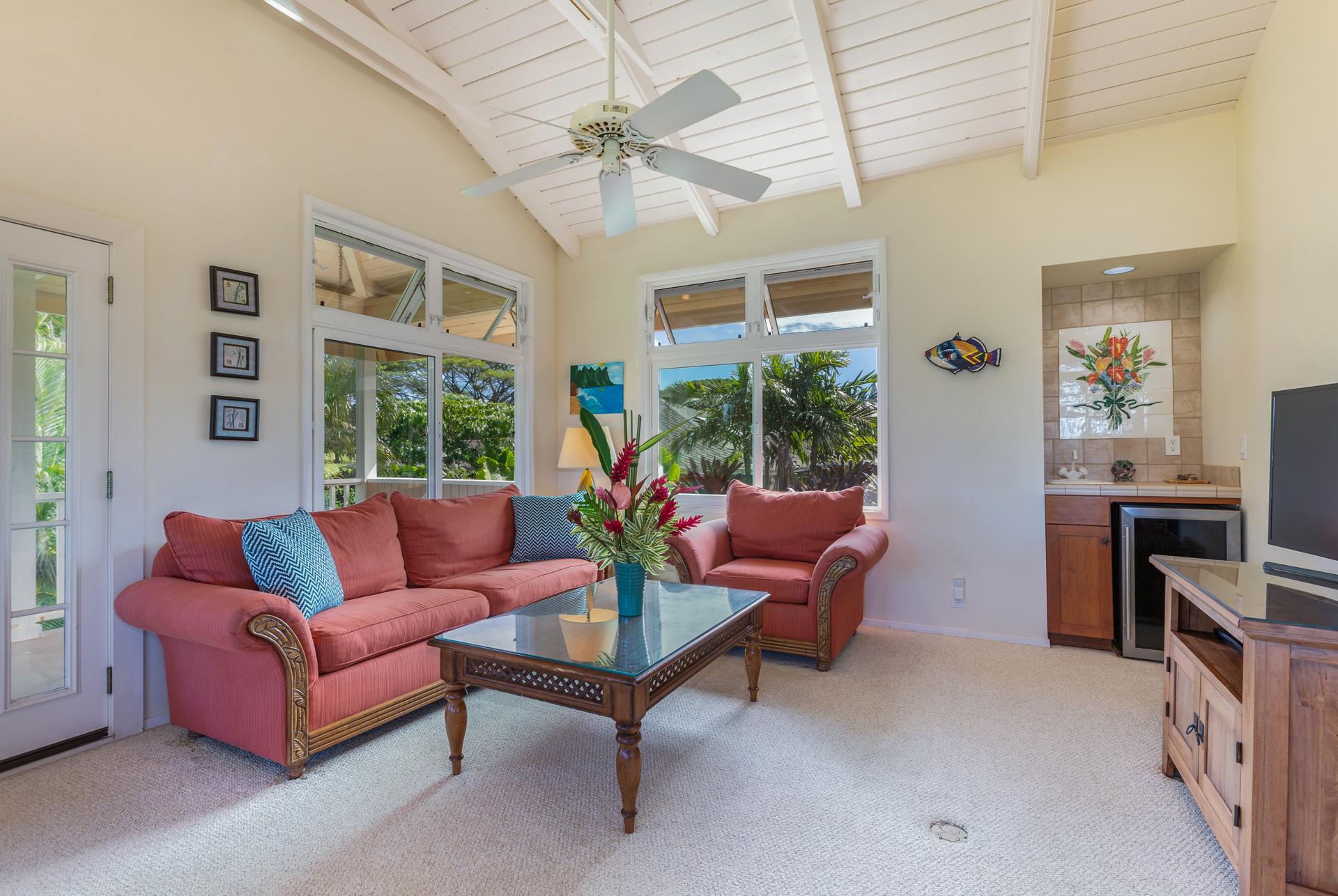 Beautiful vacation home located on the Makai Golf Course in Princeville’s Sunset Drive Community. Enjoy private, gated pool and tennis court. Just a 5 minute walk to the 1 Hotel Hanalei in Princeville where you can enjoy fine dining, sunset cocktails, and enjoy salon and spa services. Very near beaches, Princeville Center and Makai Golf Club.